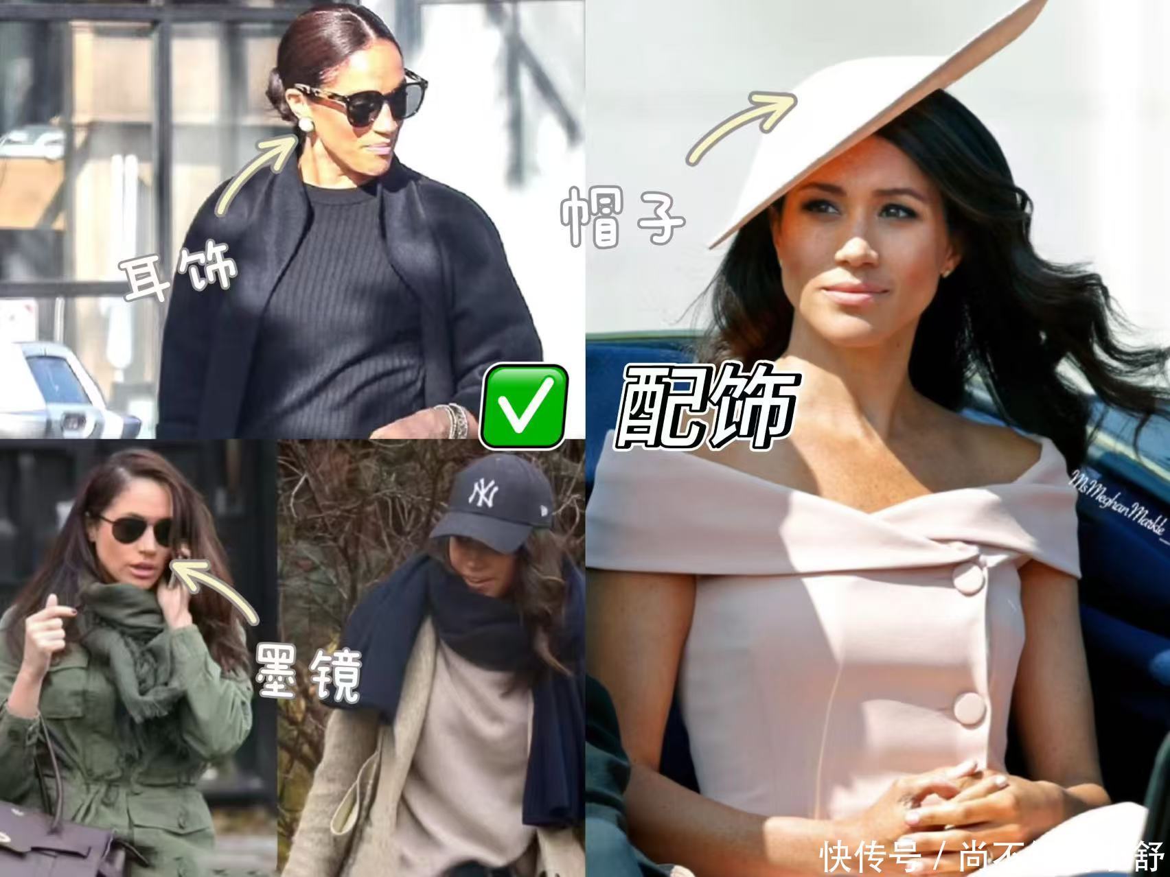配饰是点睛之笔,而非堆砌之物。请严格遵守“全身金属饰品不超过两件”的原则。过多的金属点缀会分散焦点,显得俗。瞧梅根会利用墨镜搭配耳饰,帽子搭配围巾,这种少而精的配饰,方能凸显材质本身的光泽与质感,提升整体造型的奢华底蕴。