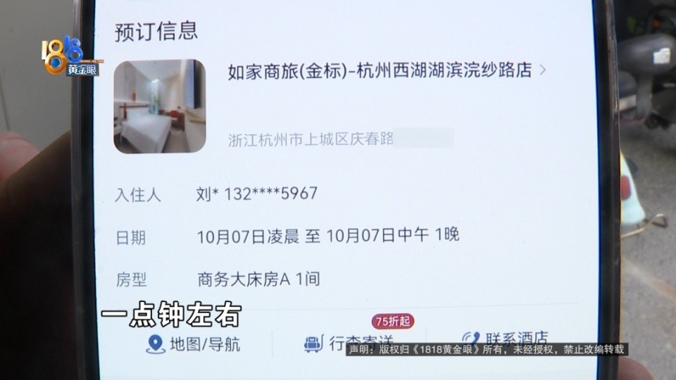 吴先生当时入住的是杭州浣沙路上的如家商旅酒店大床房,从10月7日凌晨到中午,225元。