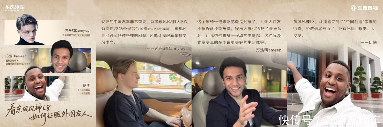 东风风神方面,结合国庆节期间用户出行场景及家国情怀热点,打造“国际友人走进东风博物馆”的创意社会事件。特邀伊拉克驻新华社记者方浩明、索马里籍抖音达人伊博及《志愿军第三部》艾迪曼扮演者芮丹尼,共访湖北十堰东风博物馆。嘉宾们沉浸式体验东风“芦席棚精神”“干打垒精神”与“马灯精神”,深刻感受到中国汽车工业从艰苦创业到技术创新的非凡跨越。在驾驶东风风神L8后,各位外国友人对其卓越的产品力和出色的驾乘体验给予了高度认可,并表示东风汽车的发展是中国制造业腾飞的生动缩影,中国汽车产业不仅在技术上实现了领先,更以开放包容的姿态向世界传递着创新与品质的力量。