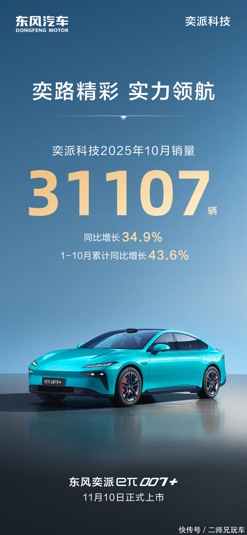 11月1日,东风奕派汽车科技公司(下文简称“奕派科技”)对外公布销售数据:2025年10月销量31107辆,同比增长34.9%,月销连续破三万,再创历史新高。今年1-10月,奕派科技累计销量同比增长43.6%,这一系列扎实的数据,不仅彰显出奕派科技持续增长的发展潜力,更为中国新能源汽车行业的蓬勃发展注入强劲动能。