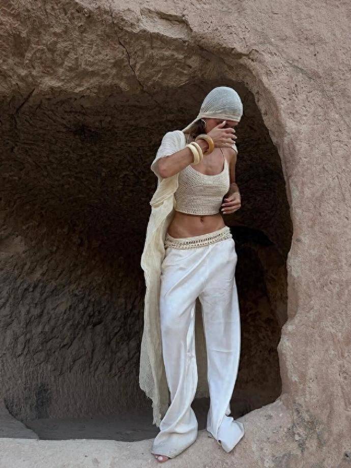 alena_dedarde的秋冬穿搭最让人眼前一亮的,是她对“层次感”的精妙运用。她从不满足于简单的单品叠加,而是通过不同材质、版型的服饰组合,营造出丰富又不杂乱的视觉效果。比如一件浅灰色的薄款针织开衫,她会内搭一件白色的蕾丝打底衫,下装搭配一条焦糖色的灯芯绒阔腿裤,脚上踩一双黑色的短靴。针织开衫的软糯、蕾丝的细腻与灯芯绒的复古相互碰撞,不仅在质感上层次分明,色彩搭配也温暖和谐,既符合秋冬的氛围,又尽显温柔气质。再比如在寒冷的冬日,她会将一件长款的驼色羊绒大衣披在肩上,内搭一件黑色的高领毛衣和一条格纹半身裙,手里拎一个棕色的皮质手提包,整体造型既有大衣的大气,又有格纹的复古细节,层次感十足的同时又不失高级感。